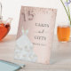 Eine Karte und Geschenke Zeichen für eine mädchenhafte und glamouröse Quinceañera, 15. Geburtstagsfeier. Eine Rose goldener Hintergrund mit Imitat Glitzer und ein Kleid. Nummer 15 wird mit einem Schriftart im Ballonstil geschrieben. Text: Karten und Geschenke. Vielen Dank!