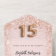 Rose Gold, rot gefärbt, mit Imitaten Glitzer Glitzern im Inneren dekoriert. Personalisieren und fügen Sie ein Foto, Namen, Party, UAWG, Rücksendeadresse und Namen. Nummer 15 wird mit einer Ballon-Stilnummer geschrieben.