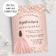 Eine moderne, stilvolle und glamouröse Einladung zu einer Quinceañera, 15. Geburtstagsfeier. Eine Rose goldener Hintergrund mit Imitaten Glitzern, ein Mädchen mit einem Kugelkrug. Der Name ist mit einem modernen handgeschriebenen Stilskript geschrieben. Personalisieren Sie Ihre Party-Daten und fügen Sie sie hinzu.