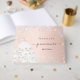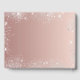 Für eine elegante Quinceañera, 15. Eine Rose Gold Imitate metallisch aussehende Hintergrundfarbe. Mit einem weißen Kleid und Imitaten verziert silberner Glitzer Staub. Personalisieren und fügen Sie einen Namen, Alter und ein Datum ein. Quinceañera ist mit einem modernen handgeschriebenen Stil-Skript mit Swashes geschrieben.