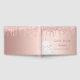 Ein Gästebuch für ein mädchenhaftes und glamouröses Quinceañera Party. Eine Rose goldener Farbverlauf mit Rose Gold Fuax Glitzer Tropfen, Farbe Tropflook. Mit einem Kleid dekoriert. Der Text: Der Name ist in dunklem Gold der Rose mit einem modernen handgeschriebenen Schriftsatz geschrieben. Personalisieren Sie den Namen und fügen Sie ihn hinzu. Rückgrat: Vorlage für Ihren Text.