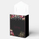 Schöne goldene High Heels, auf schwarzem Hintergrund, hübsche Aquarellfarben-rote Rosen und weiße funkelnde Sterne. Perfekte Gefälligkeitsbox für Ihre Quinceanera Einladungen. Personalisieren Sie die Verwendung für 16 . Geburtstag oder Bat Mitzvahs.