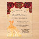 Für eine elegante Quinceañera, Ein klarer, transparenter Hintergrund. Mit rote Rosen, vergoldeten Glitzern und einem goldenen Kleid dekoriert. Personalisieren Sie Ihren Namen und Ihre Party-Daten und fügen Sie diese hinzu.
