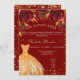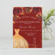 Eine moderne, stilvolle und glamouröse Einladung zu einer Quinceañera, 15. Geburtstagsfeier. Ein roter Hintergrund mit Imitaten goldener Glitzer Staub, ein Kleid und rote Rosen, Blumensträuße. Der Name ist mit einem modernen handgeschriebenen Stilskript geschrieben. Personalisieren Sie Ihre Party-Daten und fügen Sie sie hinzu.