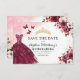 Verkünden Sie Ihre Quinceañera im Stil mit der Floral Burgund Save the Date Geburtstag Einladung. Dieses elegante Design besticht durch seine bordeauxfarbenen Farbtöne, die mit zarten Blumenakzenten geschmückt sind und sich perfekt für ein zeitloses und echtes Fest eignen. Die raffinierte Gestaltung bietet alle wichtigen Details, damit Ihre Gäste ihre Kalender für Ihren besonderen Tag festlegen können. Ob in Kombination mit Gold oder anderen Farben, die bordeauxfarbenen Töne erinnern an Romantik und Grandeur. Set den Ton für Ihre Quinceañera mit dieser wunderschön Save the Date gestaltet, um sicherzustellen, dass Ihre Veranstaltung ist ein zu erinnern.