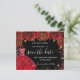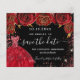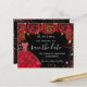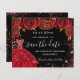 Eine gmädchenhafte und trendige Save the Date-Karte für eine Quinceañera, 15. Geburtstagsfeier. Schwarze rote Rosen, rote Imitate Glitzer Glitzern und rotes Kleid. Personalisieren und fügen Sie Datum und Name/Alter hinzu. Der Text: Save the Date ist mit einem großen angesagten, handgeschriebenen Stilskript geschrieben.