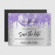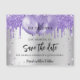 Ein silbernes Imitat mit violettem, lavendelfarbenem Imitat Glitzer und Ballons. Personalisieren und fügen Sie Datum und Name/Alter hinzu. Der Text: Save the Date ist mit einem großen angesagten, handgeschriebenen Stilskript geschrieben.