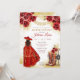 Quinceañera Western Red Gold Charra Blumenstiefel Einladung