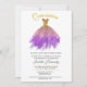 Ein goldener Glitzer lila Quineanera Party Einladung Aquarell Party mit Spitzen-Muster auf Kleid. Der weiche rosa Farbverlauf wird auf die Rückseite der Einladung übertragen. Personalisieren Sie mit ihrem Namen in dieser Skriptsignatur kontrastiert mit soliden klassischen Goudy Text Typografie.