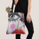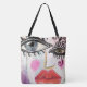 Diese bunte Tasche, die mit meinem originalen, Collage Style Kunstwerk entworfen wurde, mit fetten, roten Lippen und rauen Augen und mit Pop von Neon-Rosa, Schwarz-Weiß-Design, lila, Blau und ein bisschen Graffiti-Gefühl ist perfekt für jeden Augenblick, den Sie unterwegs sind. Nehmen Sie es zum Einkaufen, füllen Sie es mit Snacks für einen Ausflug oder benutzen Sie es als Geldbörse...Die Möglichkeiten sind grenzenlos!
