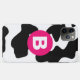Coole schwarz-weiße Kuh-Fleckenmuster mit fett-rosa Monogramm.