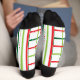 Quirky Frohe Weihnachtssocken mit Streifen, kariert, und Punkten in Limon, grün und rot.