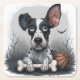 Quirky Halloween Pup: Gepunkteter Hund mit Basketb Rechteckiger Pappuntersetzer