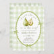 Quirky Hand Drawn Illustration Pear Baby Shower Einladung, eine süße kleine Pear Baby Dusche einladen, Preppy Green Bow Baby Dusche