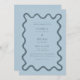 Einfache und skurrile Hochzeitseinladung mit handgezeichneter, eigenartiger Linie als Rahmen. Sie können ein Foto auf der Rückseite mit der gleichen Wellenlinie hinzufügen. Blau.