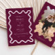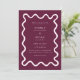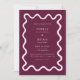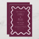 Einfache und skurrile Hochzeitseinladung mit handgezeichneter, eigenartiger Linie als Rahmen. Sie können ein Foto auf der Rückseite mit der gleichen Wellenlinie hinzufügen. Cranberry Farbe.