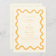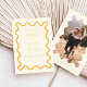 Einfache und skurrile Hochzeitseinladung mit handgezeichneter, eigenartiger Linie als Rahmen. Sie können ein Foto auf der Rückseite mit der gleichen Wellenlinie hinzufügen. Gelbe Farbe.