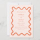 Einfache und skurrile Hochzeitseinladung mit handgezeichneter, eigenartiger Linie als Rahmen. Sie können ein Foto auf der Rückseite mit der gleichen Wellenlinie hinzufügen. Orange Farbe.