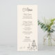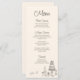 Quirky und whimsical Hochzeitskarte. Diese Menükarte verfügt über einen wunderschönen handgeschriebenen Schriftart in einem lustigen und spielerischen Stil und ist vollständig anpassbar. Am unteren Ende des Menüs befindet sich eine handgezeichnete Abbildung eines Hochzeitskuchens sowie ein Monogramm des Paares. Die Speisekarte ist in einem neutralen Farbschema aus dunkelgrau auf ecru gehalten.