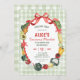 Quirky Hand Drawn Illustration Bauern Markt Geburtstagseinladung, Einladung eines Tages nur Geburtstag, Red Bow Girl Geburtstag.