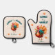Quirky Light Peach Watercolor Türkei Erntedank Ofenhandschuh & Topflappen-Set