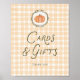Feiern Sie die Ankunft Ihres Kürbchens mit diesem niedlichen, herunterladbaren Babyduschzeichen und einem Geschenkschild mit einem hübschen, handgezeichneten Design mit einem niedlichen kleinen Wasserfarbenkürbis, umgeben von einem handgezeichneten Rahmen und einem weichen orangefarbenen Gingham-Muster im Hintergrund. Dieses Schild zeichnet sich durch die Wärme und Gemütlichkeit der Herbstsaison aus. Die warmen Farben und der spielerische Schriftart werden sicherlich den Ton für eine unvergessliche und festliche Feier Set.