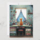 Quirky Orange Cat in einem Window Hello Flat Karte