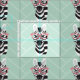 Stoff, der ein Muster von Zebras (zeigt ihre Gesichter und Hälse), jedes mit einem Paar rosa Flamingo-Sonnenbrille und ist vor einem grünen Herringbone-Muster Hintergrund.