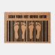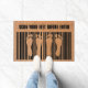 Eine braune Tür mit einem schwarzen Strichcode-Design mit Fußabdrücken und dem Text Scannen Sie Ihre Füße vor Eingabe. Herzlich willkommen bei Ihren Lieben mit diesem - Amusing Barcode Design - Scannen Sie Ihre Füße, bevor Sie Doormat.