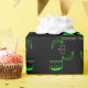 Ungewöhnliche, neuartige Packpapier Geschenkverpackung Rolle mit einem exzentrischen Venus Fliegenfalle Design in schwarz und grün.
