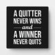 Quitter Niemals gewinnt, Gewinner hört nie auf zu Fotoplatte