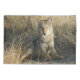 Coyote Lay Pillowcase. Ein sehr gutes Foto von einem jungen Coyote, wie es sich auf einem heißen Herbstnachmittag der Prärie im Südosten von Alberta, Kanada, in die Erholung legt.