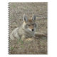 Coyote Lay Notebook. Ein junger Kojote entspannt sich nach einem Morgen, in dem Mäuse auf den kurzen Grasprairies im Südosten der kanadischen Alberta gejagt werden.