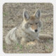 Coyote Lay Sticker. Ein junger Kojot entspannt sich nach einem Morgen, in dem Mäuse auf den kurzen Grasflächen der südlichen Alberta gejagt werden.