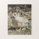 Kaninchenpuzzle aus Baumwolle und Schwanz. So viel auf Zuhause in Stadtparks wie in der Wildnis ist das Baumwolle-Schwanz Kaninchen. Dieser niedliche kleine Hase lebte auf einem Spazierweg nahe meinem Wohnort.