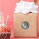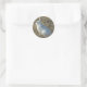 Schneeschuh Hare rund Sticker. Manchmal wird sogar Mutter Natur Plan durch das Wetter aufgefüllt, dieser Schneehase hat sich in seinen weißen Wintermantel verwandelt, aber die Winterschnee ist spät, und anstatt getarnt zu werden, sticht er jetzt gegen die braunen Präriegras hervor.