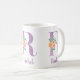 R Monogramm Lila Blumenfarbe Personalisiert Kaffeetasse