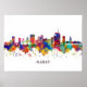 Elegante Wasserfarben-Skyline von Rabat, Hauptstadt von Marokko, Erholungen entlang der Ufer des Bouregreg River und des Atlantiks
