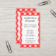 Kundenspezifische Gastronomie-Visitenkarten und Gutschein- oder Geschenkgutscheine auf der Rückseite mit rot-weiß geprüften karierten und freundlichen Briefen.