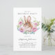 This charming birthday invitation features a hand-painted watercolor rabbit nestled inside a delicate pink and lilac flower wreath. The soft pastel colors and whimsical design make it the perfect invite for a spring or garden-themed birthday party. It adds a touch of sweetness to any celebration, especially for kids or animal lovers. Customize this adorable invite to suit your event and make it even more special for your guests.