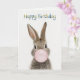 Rabbit Blowing Pink Bubble gum Happy Birthday Karte