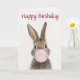 Rabbit Blowing Pink Bubble gum Happy Birthday Karte