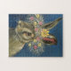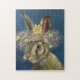 Kaninchenportrait mit einem Kranz von Zweigen und Blume