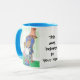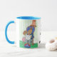 Eine weiße Ringer-Tasse, um sich zu personalisieren, mit pulvernder blauer Lippe und Handgriff, passend zu Herrn Rabbits bequemem Sessel, wie er sich mit der Zeitung und einer Kuppa entspannt! Das Design stammt aus einem Aquarellbild von Judy Adamson. Grußkarten mit diesem Design auch in meinem Laden verfügbar.