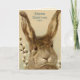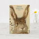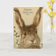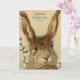 Vintage Abbildung eines großen braunen Kaninchens mit den Worten "Ostergrüße" in blau handgeschriebenem Text oben. Leere Inneneinrichtung.
