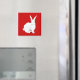 Skizze eines Kaninchens in schwarz-weißem Set vor einem roten Hintergrund. Eine großartige Karte oder ein Geschenk für Chinesisches Neujahr oder für Liebhaber von flauschigen weißen Bollen! Entspricht auch der