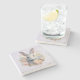 Stone coaster with a sweet and adorable watercolor image. A bunny rabbit with white and gray fur. A garland of carnation flowers in pastel colors of pink and peach. A cute Easter, birthday or baby shower image for bunny rabbit lovers.