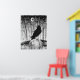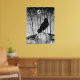 Rabe (schwarzer Vogel) in Wäldern mit Mond und Ste Poster