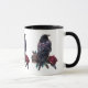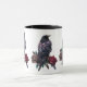 Eine Tasse Kaffee oder ein Becher, oder jedes heiße oder kalte Getränk, mit einem schönen Raben und Rosen. Eine hübsche Art von mystischem magischen Becher.