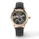 Uhr, Klassische Damenuhr mit schwarzen Lederarmband